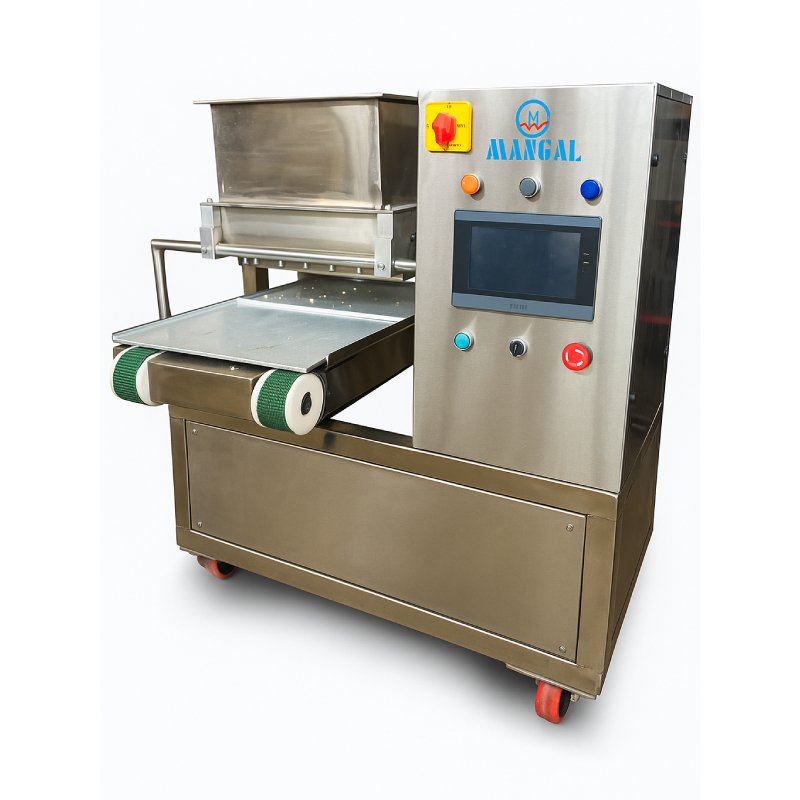 The Mangal Wirecut Machine is a fully computerized wirecut-only solution designed for high-speed and efficient production. It is suitable for variable tray widths, with tray length adjustable according to production needs. The machine is constructed with a complete stainless-steel outlet body and food-contact parts to ensure hygiene and durability. It is fitted with Rotomotive lifelong oil-filled gearboxes, AC motors, and a servo motor for consistent and reliable operation. A 7-inch Delta touch-screen HMI paired with a Mitsubishi PLC (Japan) provides precise control, while operation is supported by a 3-phase 415V AC power supply. This machine offers high-speed wire-cut functionality and is supplied with two wirecut dies, with designs selected as per the manufacturer’s choice.