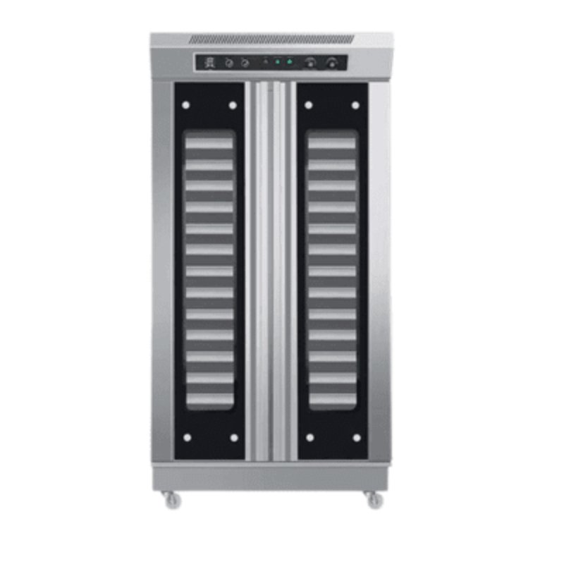 The Vertical Proofer is an ideal solution for small bakers seeking efficiency, convenience, and consistent results. Its compact design allows it to fit easily into limited spaces, making it perfect for small bakeries and production areas. Mounted on wheels, the proofer offers effortless mobility and flexible placement as needed. Advanced humidity and temperature controls create optimal proofing conditions, ensuring uniform fermentation and high-quality dough every time. Designed with safety and ease of use in mind, it features an automatic safety device for secure operation, a user-friendly interface for simple control and maintenance, and timer-based settings that allow precise adjustment of time and temperature. With its solid, robust construction and durable materials, the Vertical Proofer delivers reliable performance while remaining easy to move and operate.