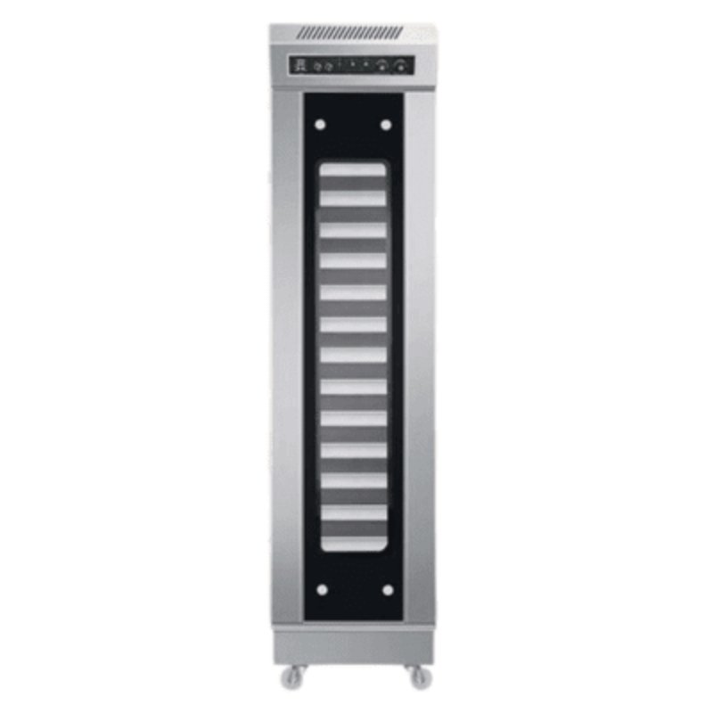 The Vertical Proofer is an ideal solution for small bakers seeking efficiency, convenience, and consistent results. Its compact design allows it to fit easily into limited spaces, making it perfect for small bakeries and production areas. Mounted on wheels, the proofer offers effortless mobility and flexible placement as needed. Advanced humidity and temperature controls create optimal proofing conditions, ensuring uniform fermentation and high-quality dough every time. Designed with safety and ease of use in mind, it features an automatic safety device for secure operation, a user-friendly interface for simple control and maintenance, and timer-based settings that allow precise adjustment of time and temperature. With its solid, robust construction and durable materials, the Vertical Proofer delivers reliable performance while remaining easy to move and operate.